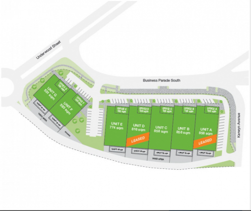 The latest offering from Goodman boasts individuality and collective togetherness in these new well-appointed industrial units. Loading and goods access is to the rear, away from the public face. The office with each unit still available has full height glazing on the road frontage, this office space is also flexible and adjustable to suit requirement. Warehouse options from 551 sqm to 858 sqm Office at 100 sqm Canopies at 90 sqm.